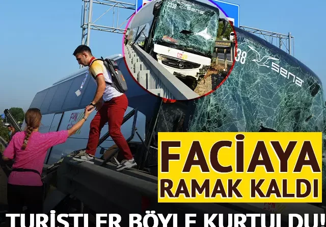 Antalya’nın Serik ilçesinde yoldan çıkan tur otobüsü refüjdeki bariyerleri parçalayıp, 30 metre yükseklikteki köprüden ırmağa düşmeye ramak kala durdu. Otobüsteki 34 turist, şoför ve rehber ise kazayı yara almadan atlattı.Kaza, sabah saatlerinde Antalya- Alanya D400 kara yolu Aspendos Köprüsü’nde meydana geldi. Antalya Havalimanı’ndan aldığı 34 turisti 10 ARR 495 plakalı tur otobüsüyle Manavgat ve Alanya ilçelerindeki otellerine taşıyan Şeref D., direksiyon kontrolünü yitirdi.