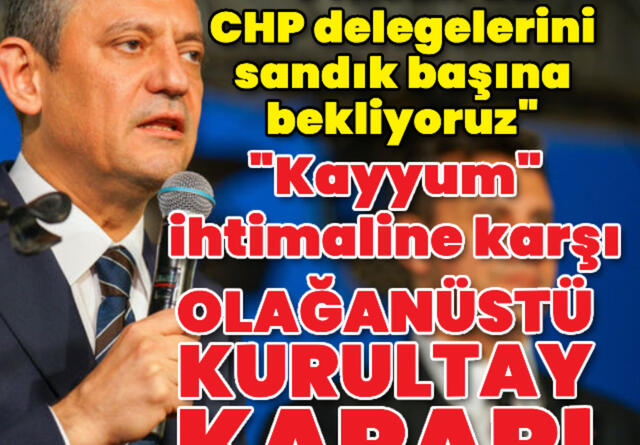 CHP’de olağanüstü kurultay kararı alındı. CHP lideri Özel, “6 Nisan’da CHP delegelerini sandık başına bekliyoruz” dedi. Özel ayrıca, “Biz hazırız. Ben kurultayda adayım. Arkadaşlarım adaydır. Biz delegenin bize verdiği görevi yere bırakmadan, sakatlatmadan kirli kayyumların eline bırakmadan Atatürk’ün partisine kayyum atatmadan yolumuza devam ediyoruz” ifadelerini kullandı